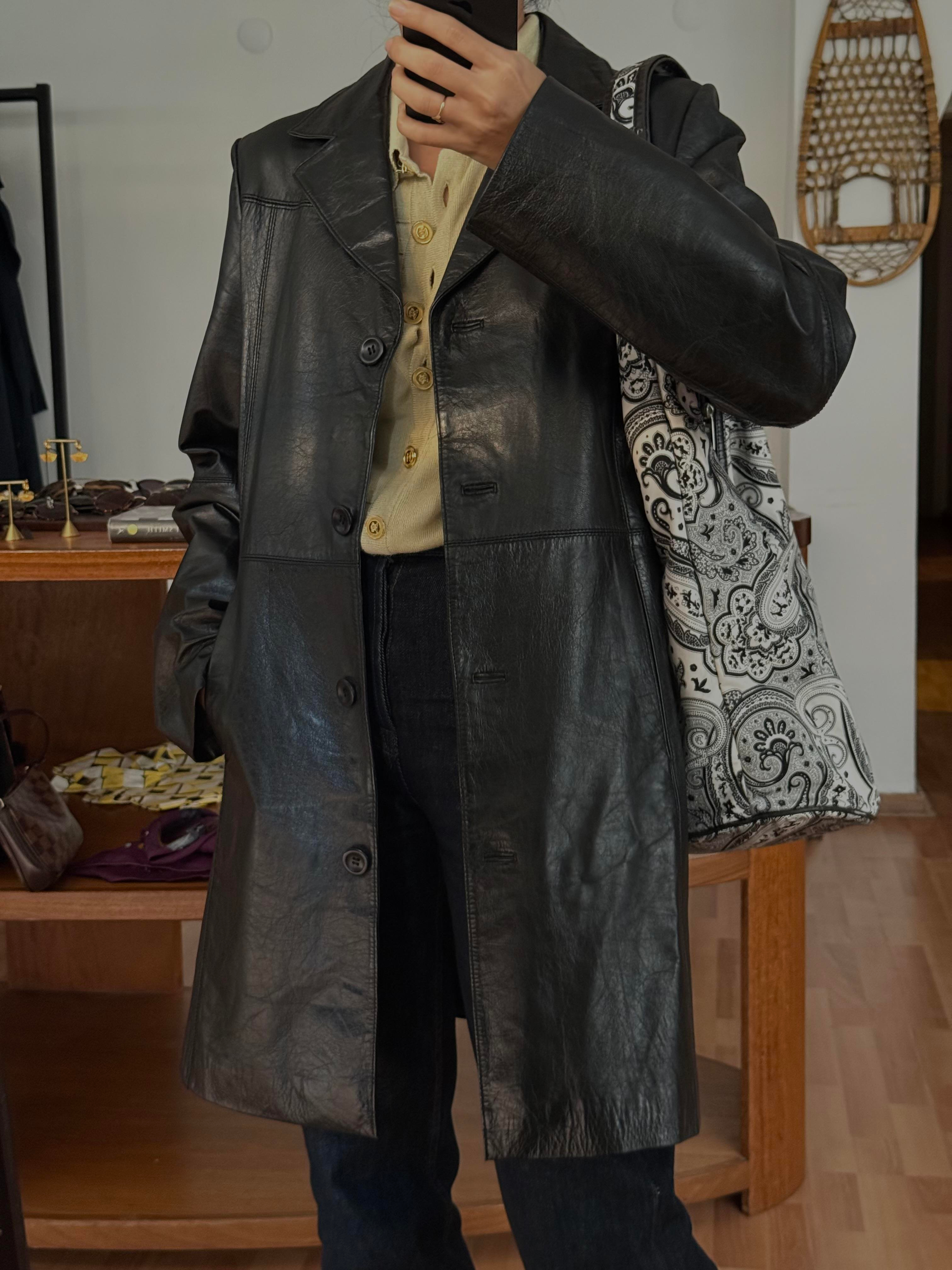 Siyah vintage deri ceket, şık ve zamansız tasarımıyla gardırobunuzun vazgeçilmez parçalarından biri. Düz kesimi, klasik yaka detayı ve orta uzunluğu sayesinde hem feminen hem de güçlü bir siluet sunar. Derinin doğal parlaklığı ve dayanıklılığı bu parçayı günlük kullanımda da özel anlarda da öne çıkarıyor.
