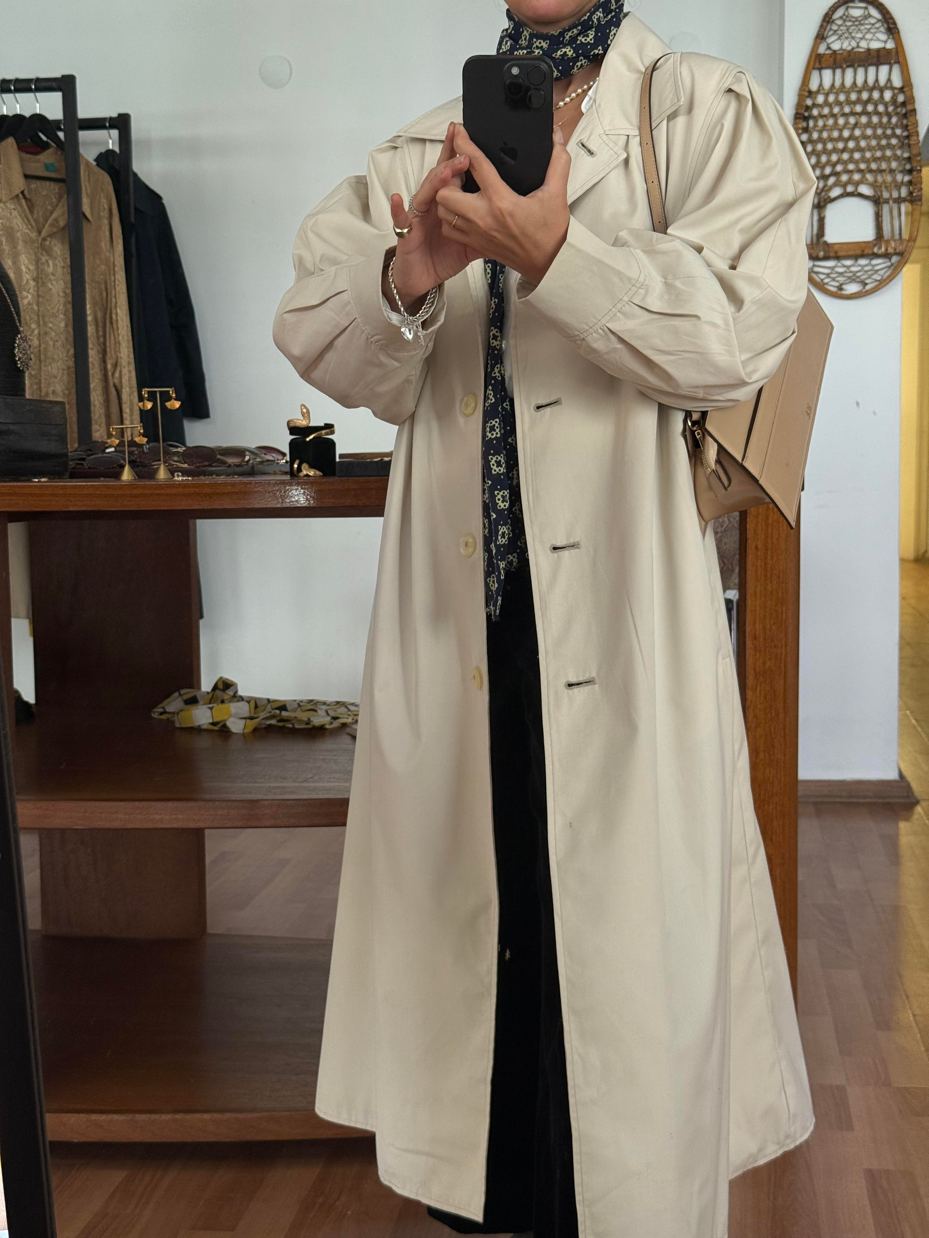 Vintage bej renkli oversize trençkot.