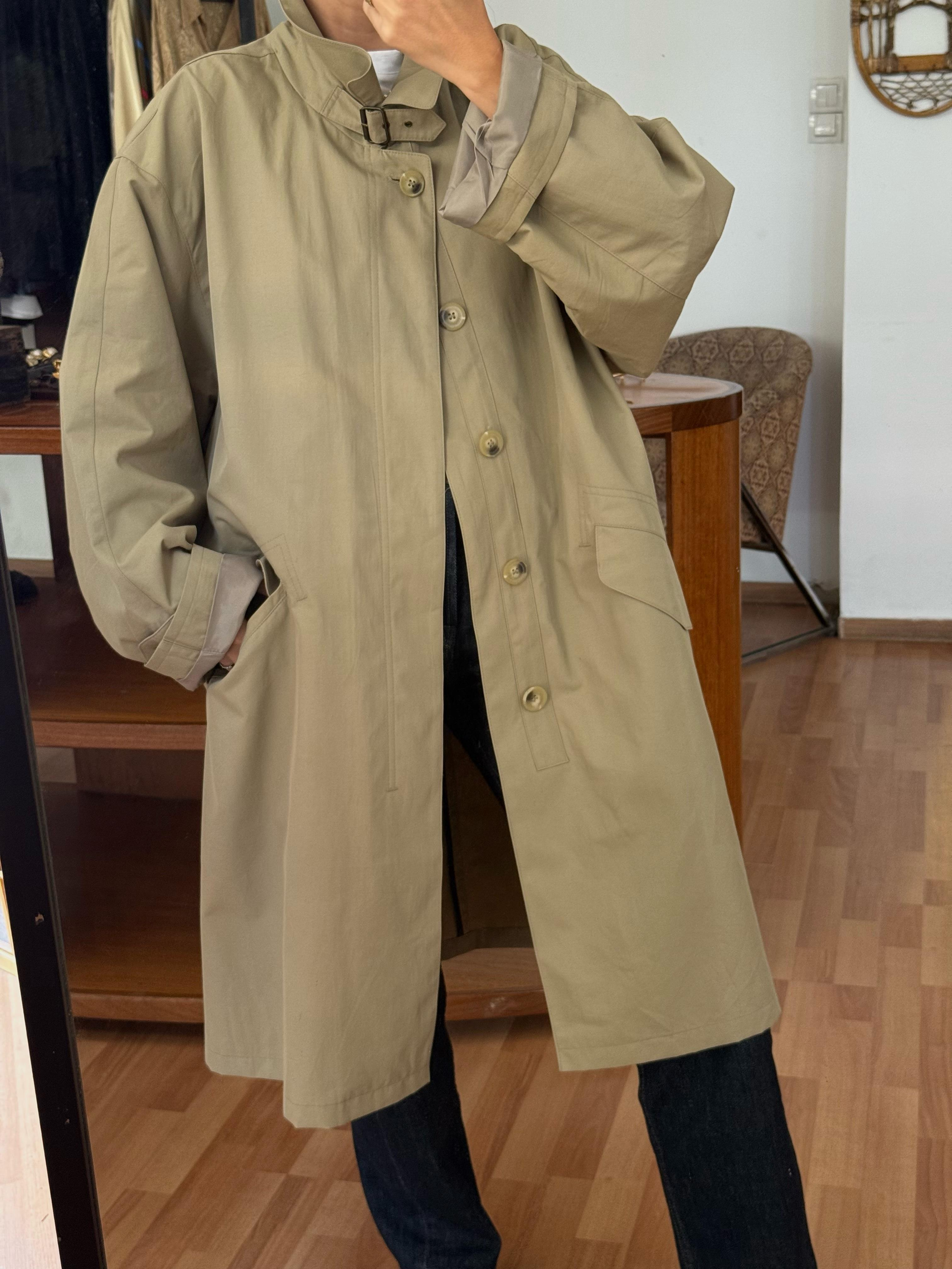 Vintage bej renkli oversize trençkot.
