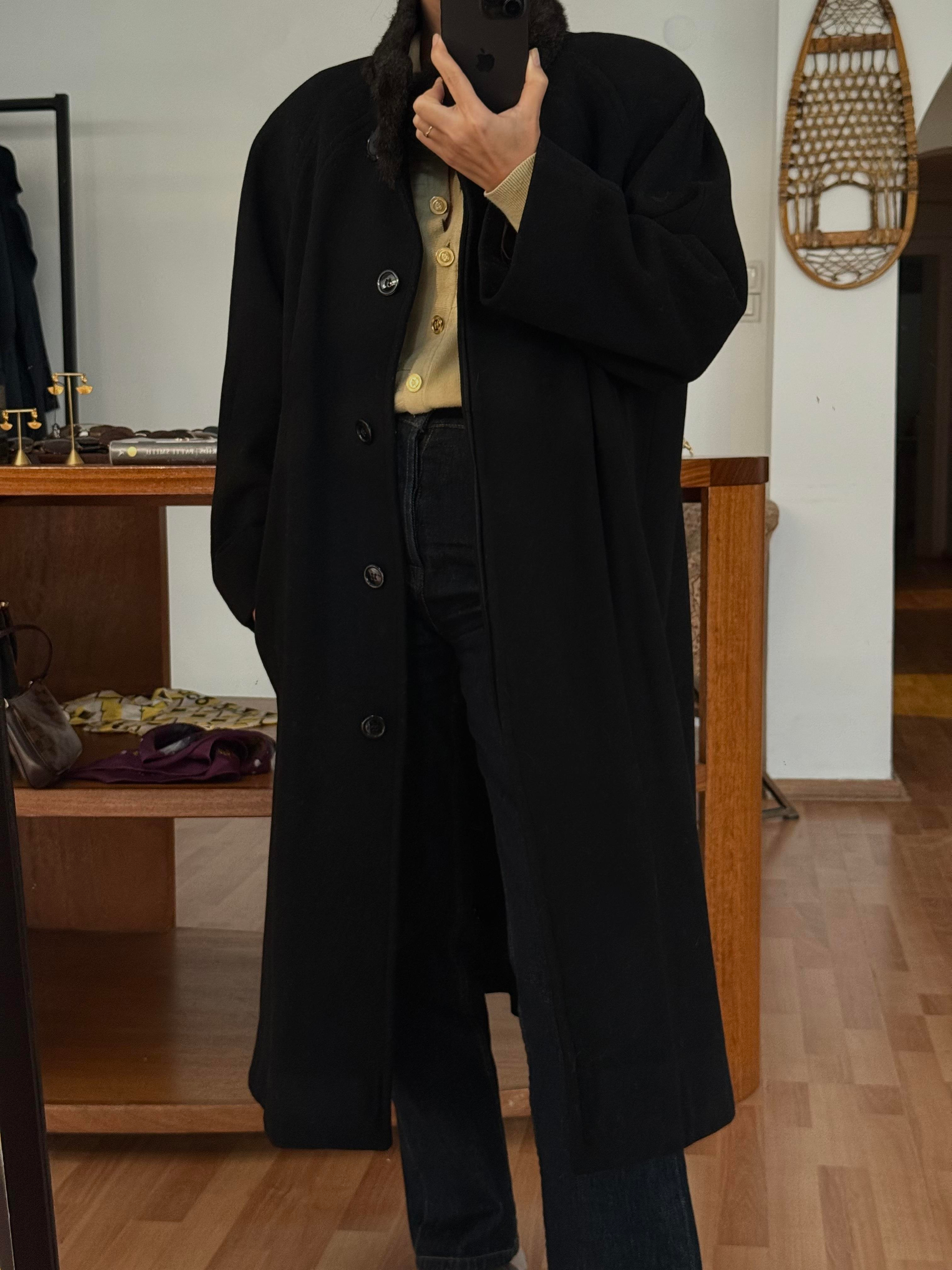 SİYAH KÜRK YAKA YÜN PALTO