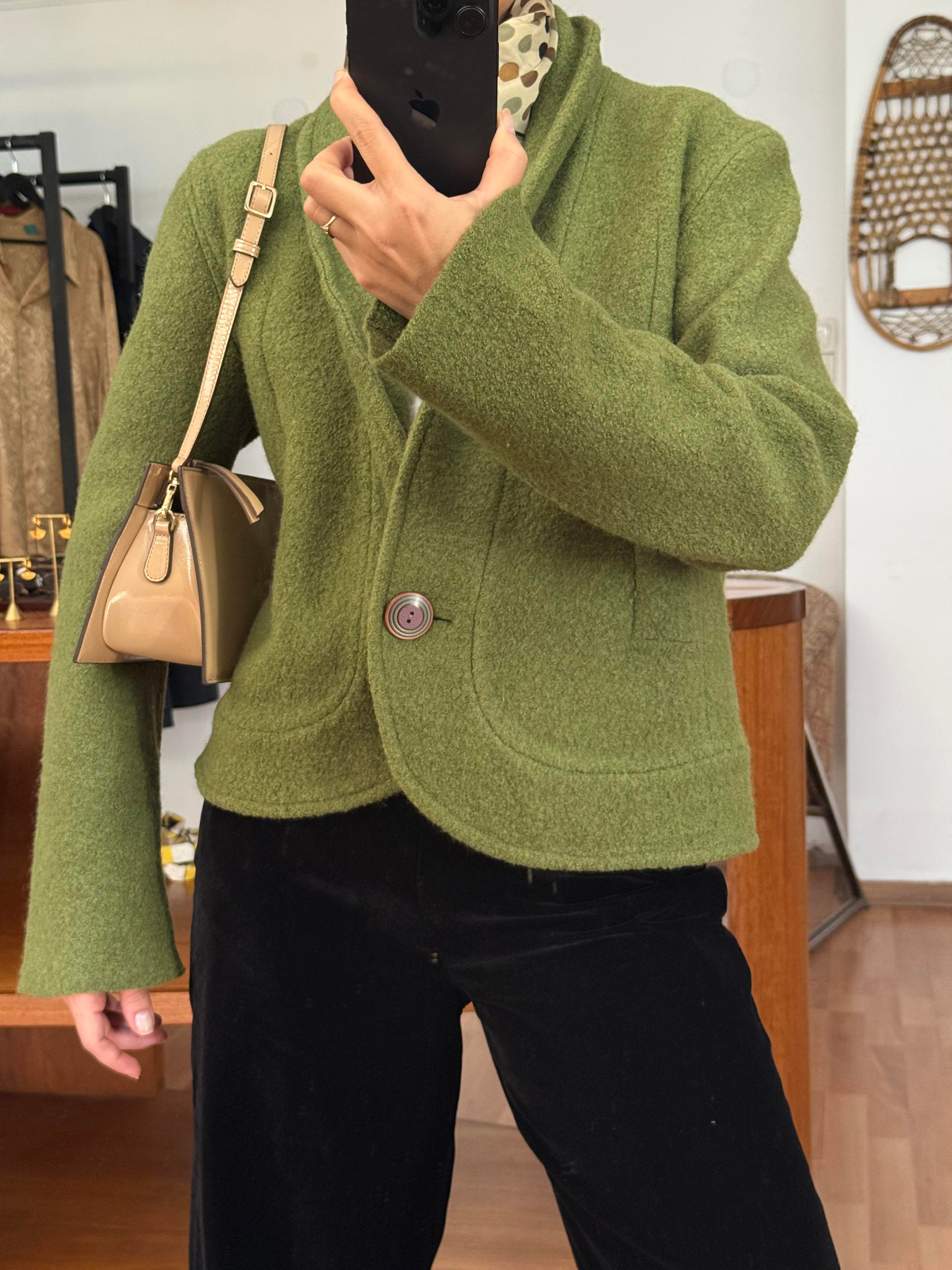 Özellikler: Tek düğmeli, dekoratif şerit dikişlere sahiptir. Giyen model 36 bedendir. Ürün 34-36-38 bedendir.